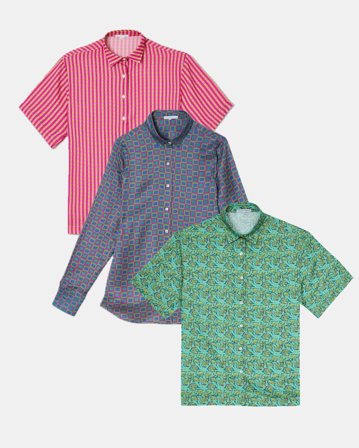 Artemisia manica corta blu - fucsia - verde
