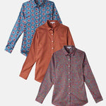 The set of the three Courageous Shirts Bourbon, Corallina and Magma.