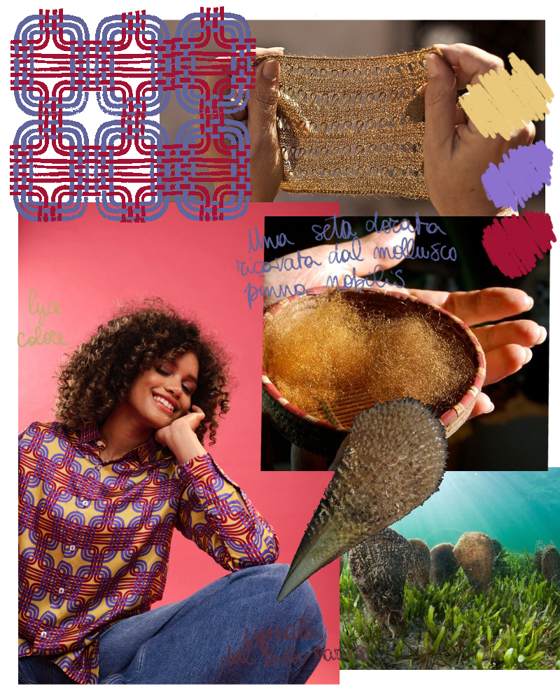 Mediterranea Gialla è ispirata alla seta marina (bisso) e alla luce che attraversa il Mediterraneo.
